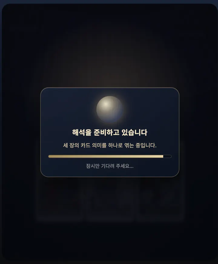 결과를 기다리는 구간도 단순 대기가 아니라, 리딩 흐름이 이어지는 한 장면처럼 느껴지게 하려 했습니다.